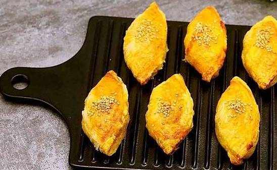 超级方便的榴莲酥就做好了,为了更简单,可以直接跳过蛋液和芝麻的步骤。蛋挞皮做的榴莲酥一层一层的非常诱人,完全可以媲美正宗的榴莲酥哦。
