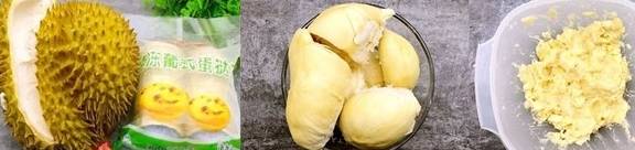 1、首先准备好所有的食材,榴莲去壳,将榴莲肉取出,压成泥备用即可;