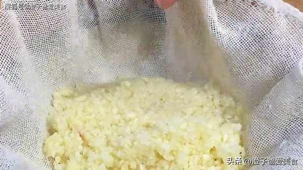 3.取一份蒜蓉,用清水冲洗掉大蒜的粘液,这样油炸的时候不容易粘锅,捞出来的蒜蓉倒在纱布里面,用力挤干水分,倒在盘子里面。喜欢吃辣椒的再切两个小米椒放里面,把小米椒也切成末,切好先放小碗中备用。