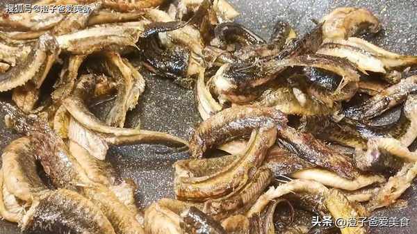 5.锅里面倒入多一点的食用油,油热以后倒入泥鳅,加点食盐,增加底味,煎至泥鳅表面金黄酥脆,盛出备用。