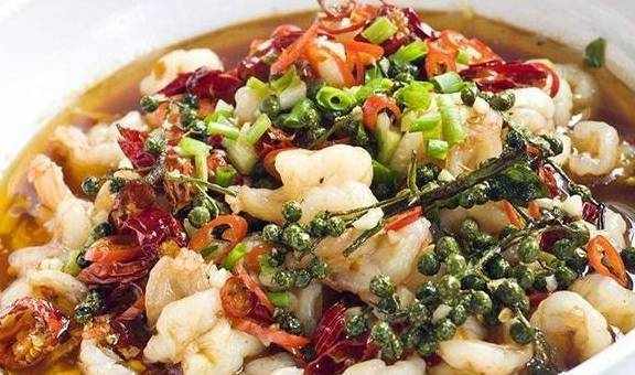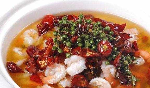 食材:麻椒、胡椒、干辣椒、油、青虾、豆芽