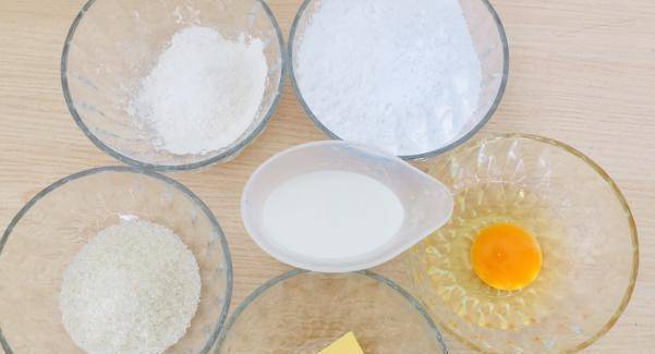 我们制作这个红薯包的时候,首先准备40克砂糖、140克牛奶、30克黄油、1个鸡蛋、20克小麦粉、130克红薯淀粉。