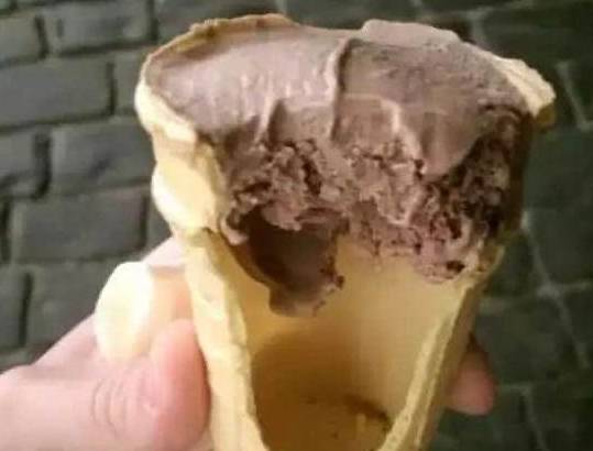 冰淇淋甜筒。下面的冰淇淋是到哪去了呢?这是真的很坑了,这不是欺骗我们这些顾客吗?