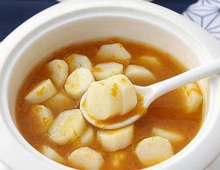 5、等南瓜水差不多快熟了,就把切好的山药倒进去一起煮到发软就可以了。
