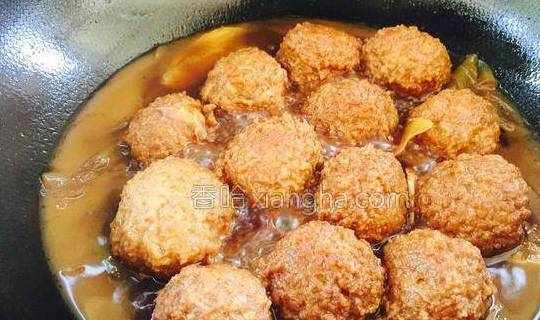 13.放入炸好的丸子盖上锅盖中小火炖煮。