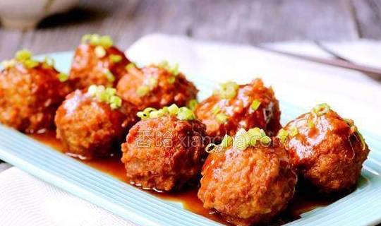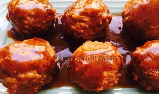 16.把汤汁淋在肉丸子上。