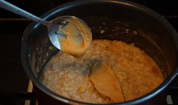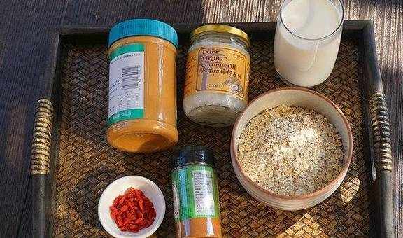 燕麦片100克、椰子油30克、肉桂粉1克、花生酱25克、牛奶250毫升、食盐2克、枸杞适量、清水250毫升