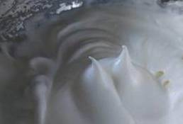7.将三分之一的蛋白霜加入到蛋黄糊中,进行切割式搅拌