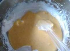 5.将蛋黄盆中的蛋黄等食材用电动打蛋器打搅均匀