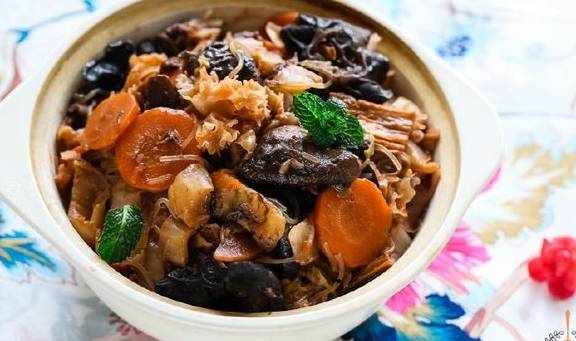 我奶奶长年吃素,过新年,霏霏家有吃素祈福的习俗,大年三十晚上,奶奶会煮一大锅素食,全家人一起吃,虽然是素,但材料珍贵,味道厚重比肉还好吃,所以年都我来说,就是三十晚上,奶奶煮的一锅斋食。