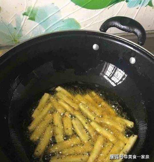 6.锅内放入适量油,油烧热将薯条放入锅中煎炸。