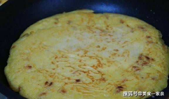 7、翻面烙熟,注意要等到上边都稳定后再翻面,否则饼大容易断裂。