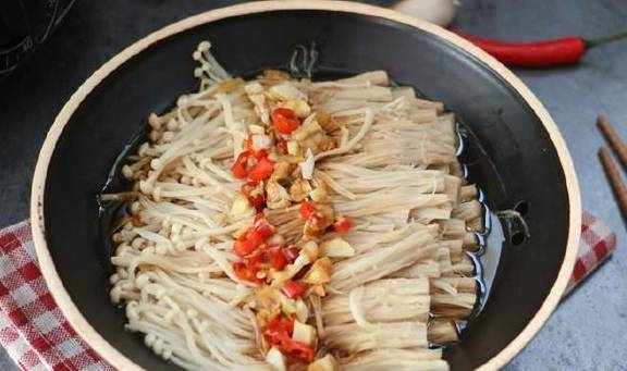春天到了,对于易过敏的人群来说,过敏季也到了。春季干燥、花粉纷飞,喷嚏、红疹、气喘、皮肤肿痒等症状也接踵而来。有一种食物可以帮助我们对抗过敏,它就是金针菇。经常食用金针菇有利于排出身体中的重金属离子和代谢产生的毒素和废物,能有效地增强机体活力。有新加坡的研究人员发现,金针菇菌柄中含有一种蛋白,可以抑制哮喘、鼻炎、湿疹等过敏性病症,没有患病的人也可以通过吃金针菇来加强免疫系统。而且金针菇不仅是抗过敏这么简单,它还可以降低胆固醇,缓解身体疲劳,抑制癌细胞,可谓好处多多。今天小编就介绍一道用金针菇烹饪的菜肴,省时省力又美味,最适合春季食用了。