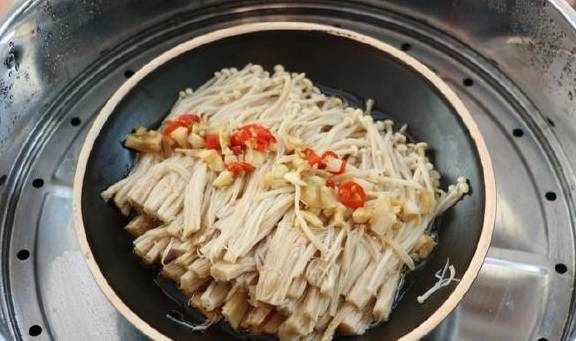 2.将金针菇放入盘中。