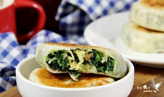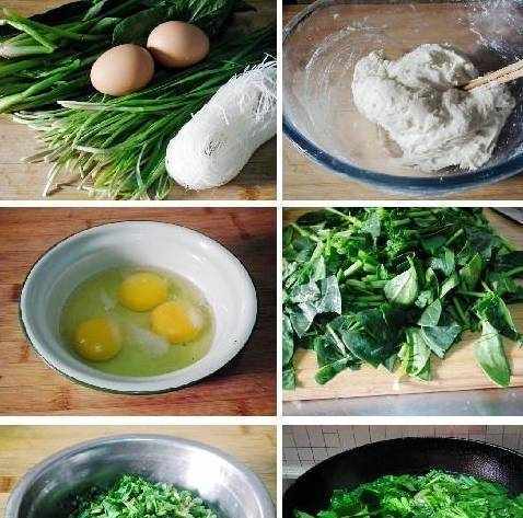 小贴士;菠菜要焯水,口感会更好。面团要提前揉出饧至,鸡蛋要最后加入,这样可以吸走韭菜出的汤汁。用电饼铛烙制更好。