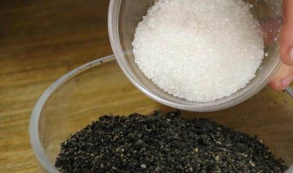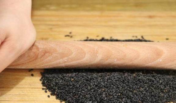 做法:先将黑芝麻用擀面杖擀得碎一些,然后加一些白砂糖先搅拌一下。