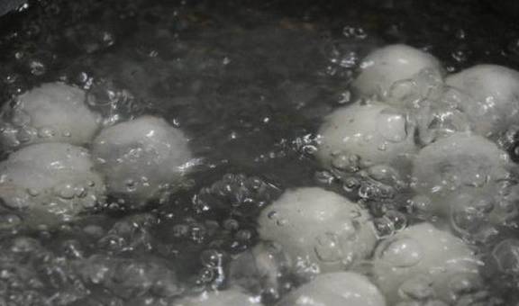 锅里烧水,水开后放入汤圆,透明后就可以盛出享用了,喜欢流心的可以多放一些猪肉或者黄油。