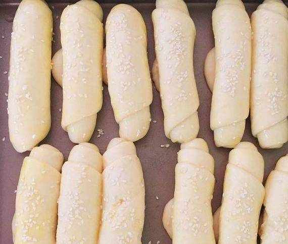 3.每份小面团都是这样擀开,然后从上而下卷起来,记得卷紧点哦