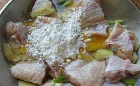 倒入适量的生粉、葱、姜、盐、料酒、胡椒粉,均匀腌制半小时左右。还有一个重要环节,就是加入一只鸡蛋搅拌一下哦。