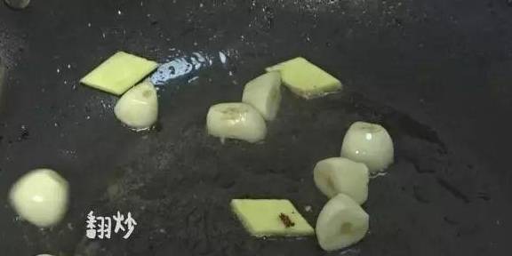 小火烧油,放蒜,姜片爆香