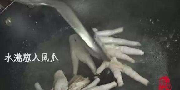 开大火煮水,直到沸腾,把凤爪放下去焯水