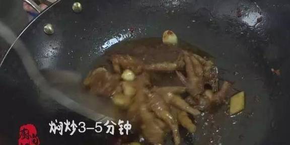 加入凤爪和清水,慢炒3-5钟