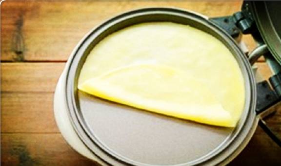 准备好平底锅预热。倒入面糊。面糊熟后掀开放凉网晾凉,直至面糊用尽
