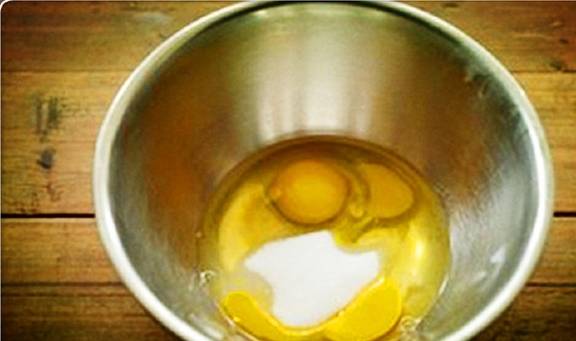 把鸡蛋和25克糖,还有少许的盐拌在一起搅拌。
