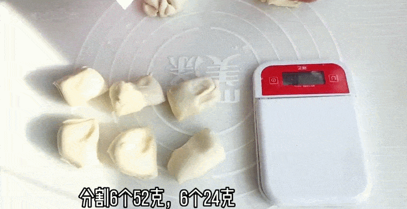 5.发酵好后,分割6个52克,6个24克的面团 松弛15分钟
