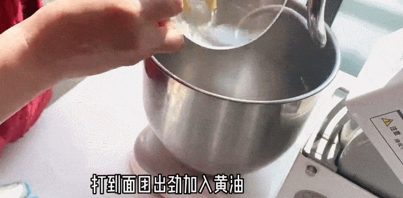 2.搅拌成粗膜后加入黄油