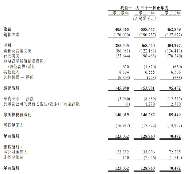 翻看往期招股书,从2017年到2021年,澜沧古茶的年营收和净利润都呈稳定上升趋势:2017年营收2.5亿,净利润0.59亿;2021年这两项指标均翻了一倍,达到5.59亿和1.29亿。2022年则为4.63亿,净利润跌至7000万元。