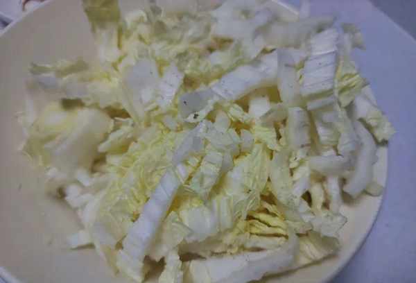 3、将准备好的卷心菜放入清水中,用手切成小叶,然后将卷心菜去皮。将洗净的卷心菜放入绞肉机中,切成小块备用;