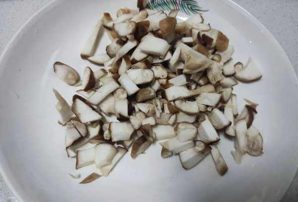 4、准备适量的新鲜香菇,将香菇用清水洗净。香菇洗净后,放在案板上切成小方块,切好的香菇备用;