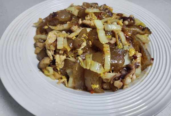 红薯粉、白菜、虾仁、香菇、鸡蛋、盐、蚝油、小菜、油