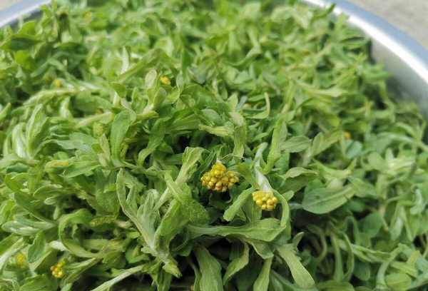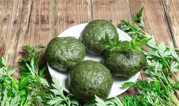 菊科蒿属植物也可称为普丁、蒿、艾叶。以前,服用艾草果汁的过程有点复杂。新鲜的艾草用石灰水制成,在高温下煮沸,最后冲洗并研磨以提取汁液。将过滤后的艾草汁揉入糯米面团中,包上馅料蒸熟。