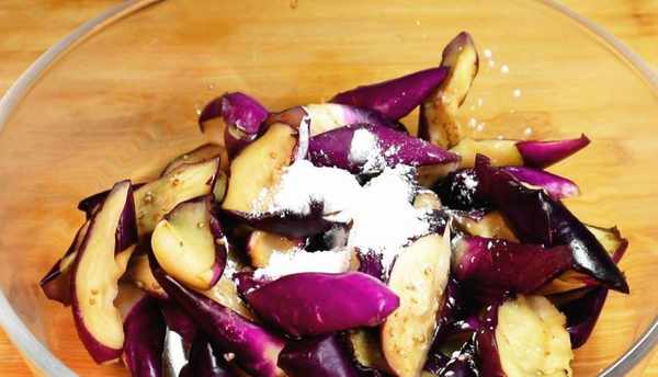 第一步,选择更适合烘烤的长茄子。请记住,当您摘下它们时,如果您按下它们并且它们迅速弹回,则表示茄子是新鲜的。老茄子如果自然烤,味道就不好了。将茄子洗净,去蒂,然后用刀切成大小一致的片状,放入碗中,撒上适量的盐,搅拌约5分钟。腌制5分钟。