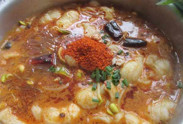 第七步:将热油淋在辣椒粉上即可食用。吃着这样的麻辣鱼火锅,非常的入味,吃起来也非常的惬意。