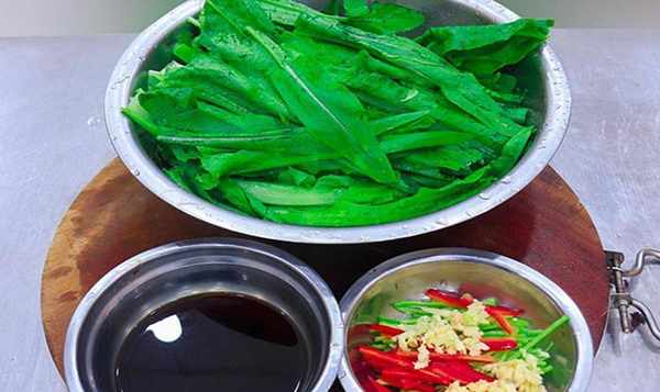 2.在水壶里烧开水。水烧开后,将生菜放入沙拉中,倒入少许植物油,沙拉看起来油亮有光泽,将沙拉焯一下。30秒,然后在它变软变绿后,倒出沙拉并沥干。水稍后放在盘子里。