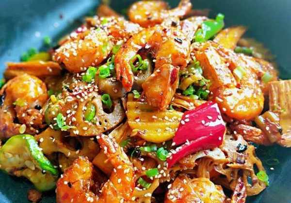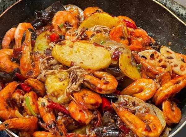 在平底锅中加热油。当油热时,将土豆炸熟并放好。然后锅里留底油,开始煎大虾。颜色变化后,取出机油,检查机油情况。将准备好的干辣椒、花椒、大蒜倒入其中,加入适量的豆瓣酱。炒红油给它,然后倒入芹菜片和莲藕片炒2分钟左右,然后加入大虾和土豆片,轻轻翻炒几下,倒入调味薯片快速翻炒,撒上适量欧芹和白色。芝麻可以煮了!这么美味可口的美食就做好啦!喜欢吃的朋友赶紧跟着我一起做吧!