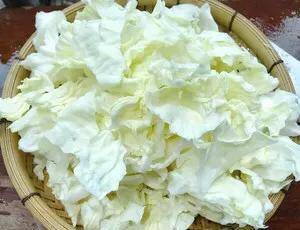 1、先准备一颗新鲜的卷心菜,对半切开,然后切成细条。将一根葱切成葱花,将一小把干辣椒放入碗中待用。大蒜沥干并切碎。