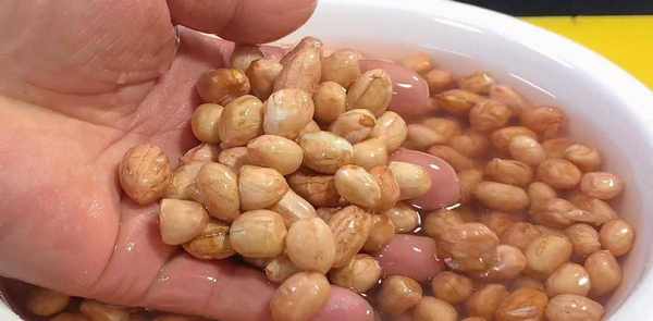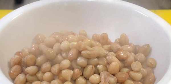 时间到了,再次清洗花生米,清洗干净后取出。