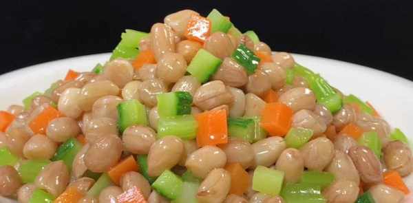 锅中留少许底油,然后将水和半茶匙盐倒入碗中。水开后,将胡萝卜和切碎的芹菜放入锅中焯一分钟,然后迅速捞出,倒入水中冷却,捞出,待水干后与花生米一起放入。