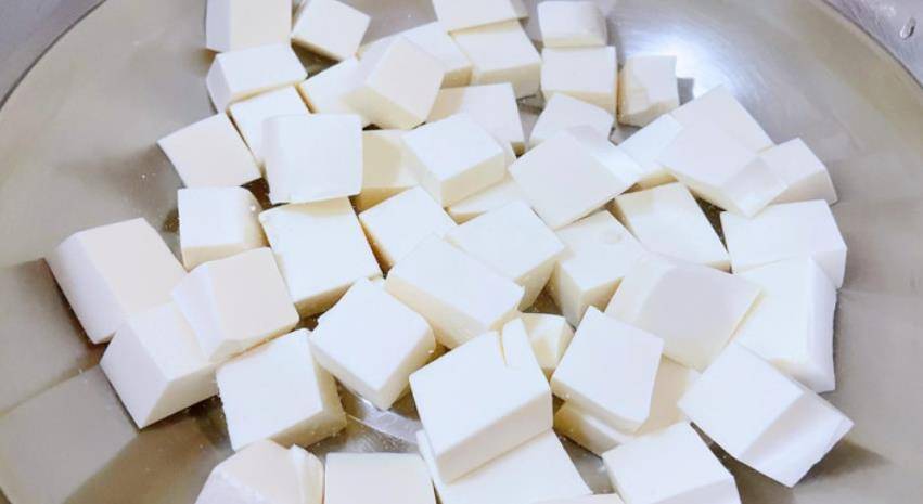 1.软豆腐切小块。