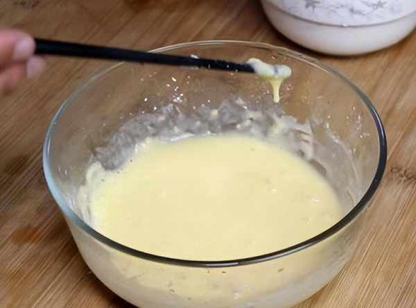 2、准备一个大碗,鸡蛋打散,加入适量面粉和淀粉拌匀成糊状。