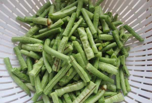 3、长豆洗净备用。最好选择嫩长豆,味道鲜美。
