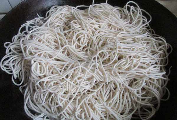 1.鲜面,我是用面条机做的。我可以自己控制厚度。如果没有面条机,也可以买新鲜的面条。
