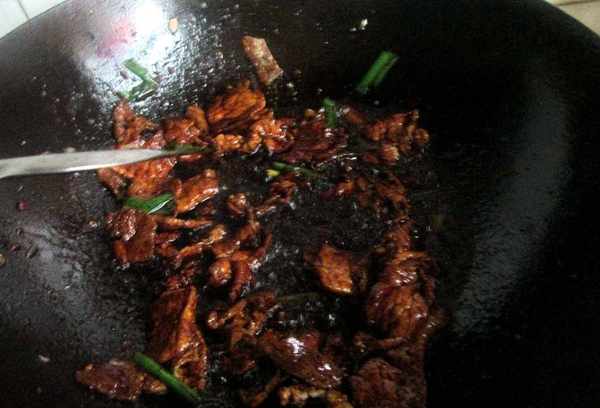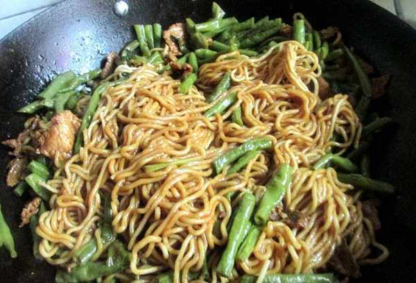 5、倒入长豆继续翻炒。