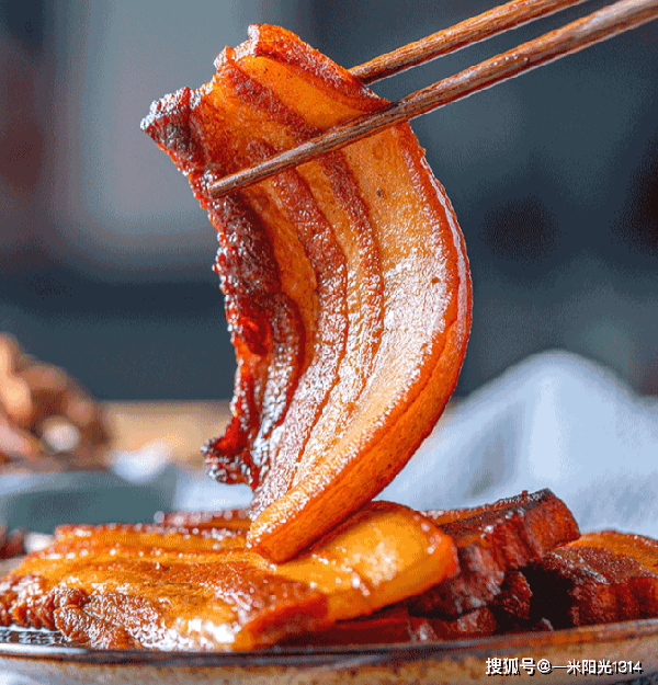 把子肉是济南传统鲁菜,早在清朝时期,鲁地即流传有用草绳捆扎五花肉,加以酱油炖煮而成的把子肉,其味入口即化,香而不腻。