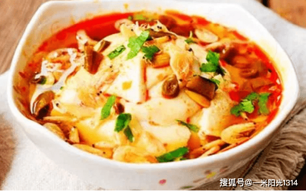 “豆腐脑又称水豆腐,是一道著名的传统特色小吃。 利用大豆蛋白制成的高营养食品,多在晨间出售,常与豆腐花、豆花混用,依据各地口味不同,北方多爱咸食,而南方则偏爱甜味,亦有地区如四川等喜爱酸辣口味