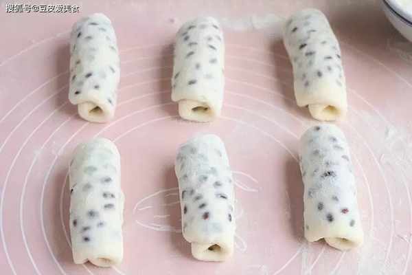 6、把面团剂子擀成面皮,包上适量红豆,包成包子形状,擀成长舌状,卷起来,卷口朝下放入蒸锅,静置10分钟。